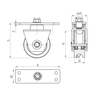 Materiał: Stal, Wykończenie: Cynk, Marka: Domabau, Waga bramy Gmax/Goptimal (kg): 200, Wygląd: Antracyt RAL7016, H: 75, h: 64, Phi: 58, c: 28, a: 17, b: 85, R: 8, s: 55