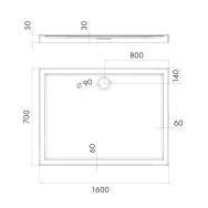 Caspar New Black Stone brodzik czarny prostokatny 90x120 cm