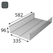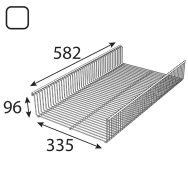 Półki druciane kładzione na wspornikach INTEGRI®. Dostępne w 3 głębokościach (320, 420, 520 mm) i 2 szerokościach (600 i 1200 mm). ARWS — półko-kosz. ARWSD — przegroda dzieląca półkę na sekcje.