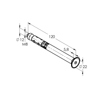 Pręt kotwiący stal nierdzewna AISI 316 M12 długość 135 mm do kotwienia