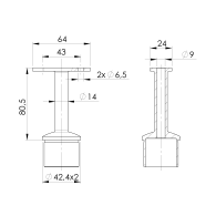 Uchwyt poręczy stały ze stali nierdzewnej AISI 316 na słupek fi 42,4 mm, szlif | A14/0710-242 |