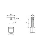 Materiał: Stal nierdzewna AISI 316, Wykończenie powierzchni: szlif, Słupek: 40x40x2, Poręcz: płaska, H: 81, Phi