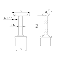 Materiał: Stal nierdzewna AISI 304, Wykończenie powierzchni: szlif, Kotwienie: od góry, D: 42,4x2,0, Phi: 42,4