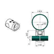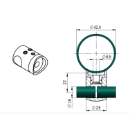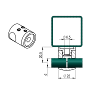 Materiał: Stal nierdzewna AISI 304, Wykończenie powierzchni: szlif, Słupek: 40x40x2, Phi sq: 15x5, a: 25, b: 25, H: 25