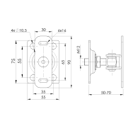 Materiał: Stal, Wykończenie: Cynk, Waga bramy Gmax/Goptimal (kg): 300, Marka: Domabau, B: 65-85, e: 51.5, h1: 100, h2: 100, M: 20, s: 48, Phi sq: 60x40