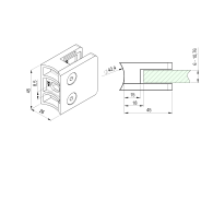 Uchwyt do szkła stal nierdzewna AISI 316 polerowany do balustrad D42,4, szkło 3,5-12,76 mm | A14/23KP-042-L |