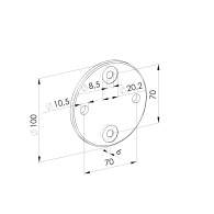 Materiał: Stal nierdzewna AISI 304, Wykończenie powierzchni: szlif, Słupek: D42,4, Zastosowanie: kotwienie, Kotwienie: boczne, M: 8, Phi: 42,4, b: 50, s: 100