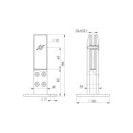 Materiał: Stal nierdzewna AISI 304, Wykończenie powierzchni: szlif, Szkło t: 12-17,52, Kotwienie: góra, Otwór w szkle: 15, G/h kN: 0,5