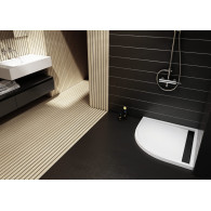 Brodziki wykonane w technologii Stabilsound® o wysokości 12 cm przeznaczone do montażu na 3 sposoby. Brodzik można postawić na podłodze, przyklejając do posadzki – to metoda najprostsza i najszybsza, nie wymaga podkuwania, ponieważ syfon znajduje się wewnątrz konstrukcji. Istnieje również możliwość częściowego wpuszczenia brodzika w podłogę lub całkowitego zlicowania go z posadzką. Cechuje go pełna stabilność, a montaż nie wymaga wiercenia w ścianie czy kotwienia. New Horizons jest brodzikiem uniwersalnym – dzięki samonośnej konstrukcji idealnie sprawdzi się w każdej sytuacji montażowej i projektowej – także w budownictwie wielorodzinnym. Powierzchnia brodzika o strukturze kamienia jest antybakteryjna, antypoślizgowa i łatwa w utrzymaniu w czystości. Model dostępny jest w kolorze białym (RAL 9003) oraz czarnym (RAL 9004).