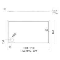 Caspar New brodzik prostokątny odpływ na środku krótkiego boku 90x160 cm