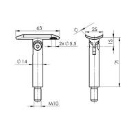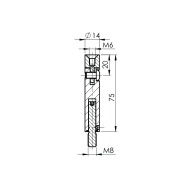 Materiał: Stal nierdzewna AISI 316, Wykończenie powierzchni: szlif, D1: 14, H: 75, M: 8, M1: 6